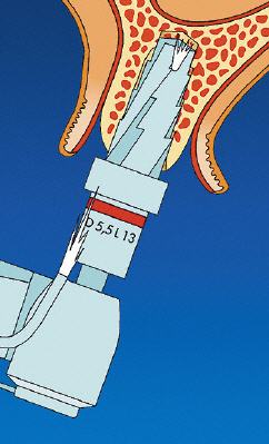 Die Sofortimplantation ist nur bei entzündungsfreiem Zahnfach, der so genannten Alveole, und in der Regel nur im Frontzahnbereich möglich. Das Zahnfach wird zunächst mit einer Pilotfräse mit kleinem Durchmesser vorbereitet, um dann das Knochenlager in Richtung Gaumen verbreitern zu können.